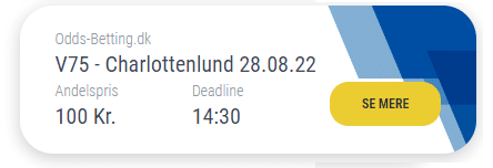 V75 Charlottenlund – Søndagens V75 andelspil kun 100 kr. pr. andel, og vi sælger 50 stk. Du kan spille med her: